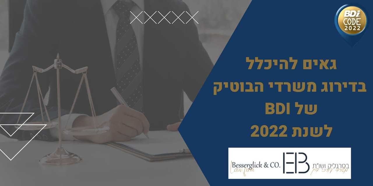 עו"ד אייל בסרגליק: "שמחים לראות שהעבודה הקשה והבלתי מתפשרת נושאת פרי ומביאה הישגים" משרדו של עו"ד אייל בסרגליק ממשיך להצטיין. המשרד נבחר גם השנה להיכלל בדרוג משרדי הבוטיק של BDI...